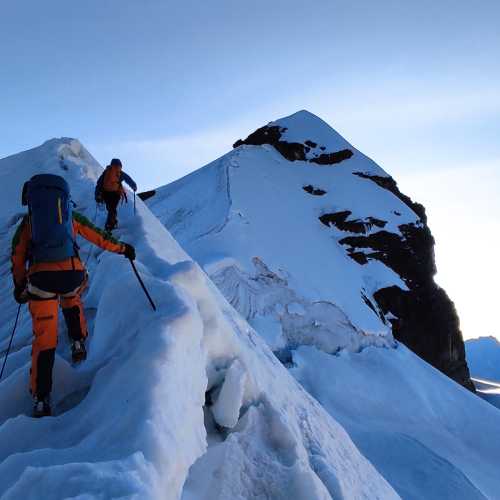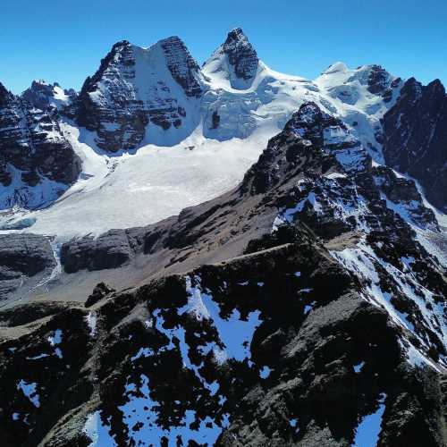 We will have a coffee and some cookies before leaving, at 5,550 m. There is not much appetite, we will leave at 01:00 a.m. Unlike Huayna Potosi, this mountain is a constant climb of 35 to 45 degrees, there are few places where you can rest comfortably, we will go through cracks and exposed parts that we will have to go with caution, it usually takes 5 to 6 hours to reach the summit of this impressive peak, we usually reach the summit to see the sunrise, we will return carefully along the same route to the high camp, we will rest and pack up, impressive peak, we usually reach the summit to see the sunrise, we will return carefully along the same route to the high camp, we will rest and pack up our equipment to descend to the base camp, where our transportation will be ready to return to the city of La Paz/ night in hotel / end of service.