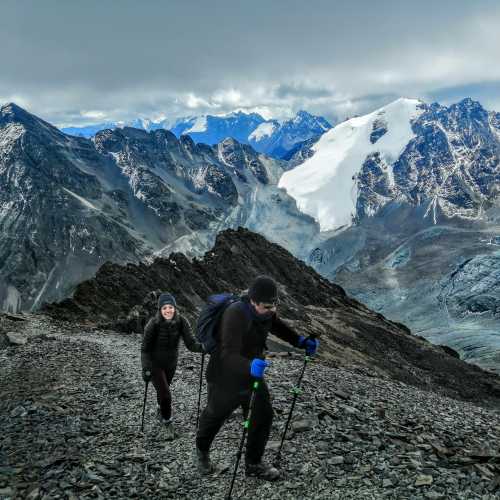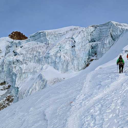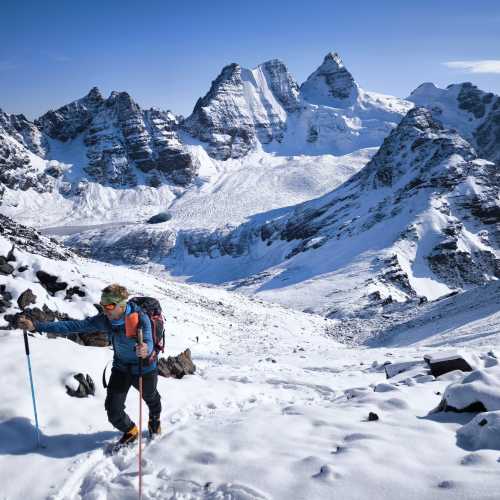 Today we will walk for an hour to the nearby glacier to begin a series of basic mountaineering practices (glacier crossing, use of crampon, use of ice axe, self-arrest in falls) in the afternoon we return to our base camp to rest/night in tents