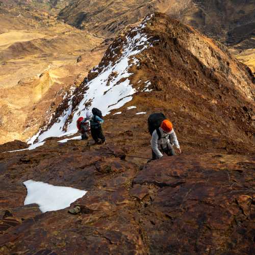 We leave at 09:00 from your hotel and drive for three hours (we must cross the city of El Alto) and we will arrive at Rinconada, where a team of mule drivers will be ready with the animals to take us to the base camp 4,630m. Usually an hour's walk, we can choose to spend the night in one of the shelters (basic shelter) or use our tents.